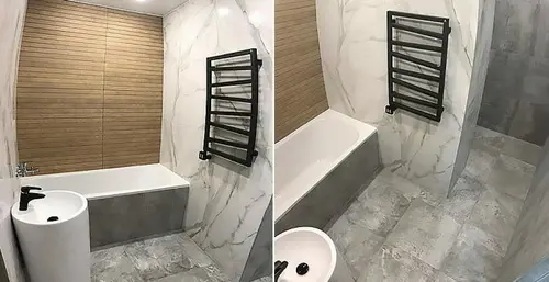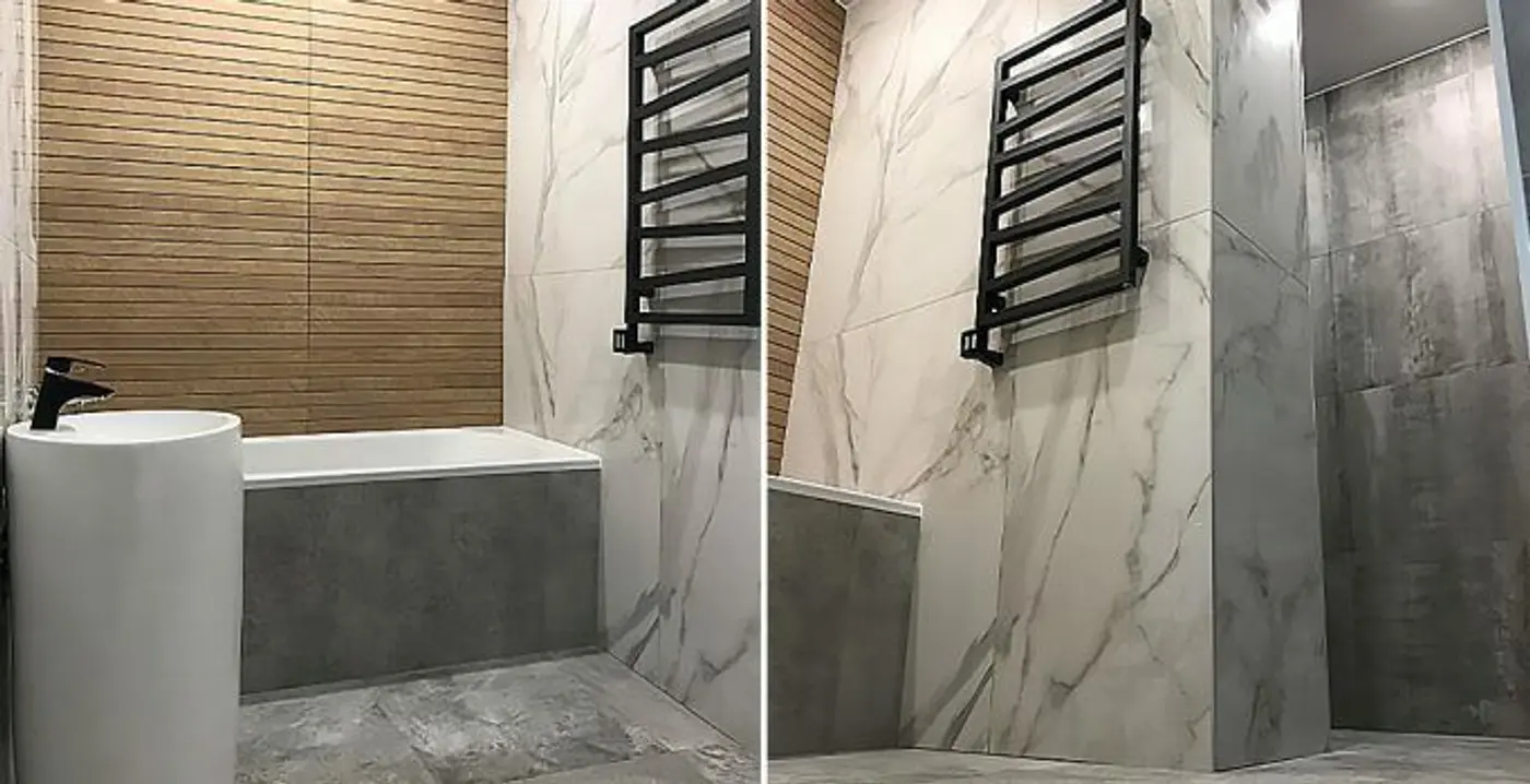 Особенно впечатлило, как ребята сразу предложили продуманные решения. Например, плитка с мраморной текстурой — я даже не думал, что такой выбор сделает ванную настолько стильной. А акцентная стена с плиткой «под дерево» добавила уюта — теперь каждый раз, заходя в ванную, ловлю себя на мысли, что здесь приятно находиться.
